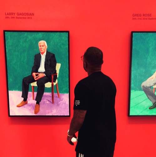 In 82 Portraits and 1 Still-life, David Hockney offers a vibrant and intimate view of people with whom he has developed relationships over the past 50 years. The majority of the portraits were painted in Hockneys Los Angeles studio, all from life and over a period of two or three days, which the artist has described as 20-hour exposure. None of Hockney portraits are commissioned; for this series he invited family, members of his staff, and close friends to sit for him including several curators, art dealers, and collectors This image above is of legendary world renown art collector Larry Gagosian (2013).