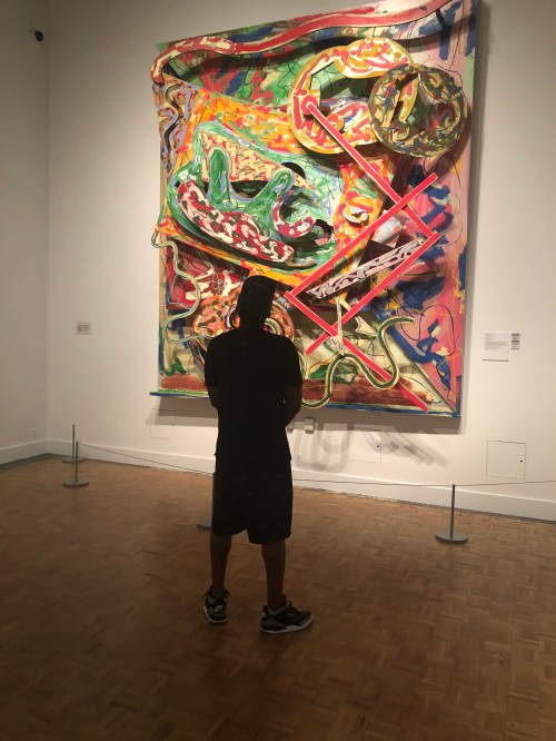 Frank Stella works are influenced by Jasper Johns, Jackson Pollock, Barnett Newman, Franz Kline and Caravaggio. This 3 D Stella pictured above is one of my favorite paintings at the Detroit Institute Of Arts museum.